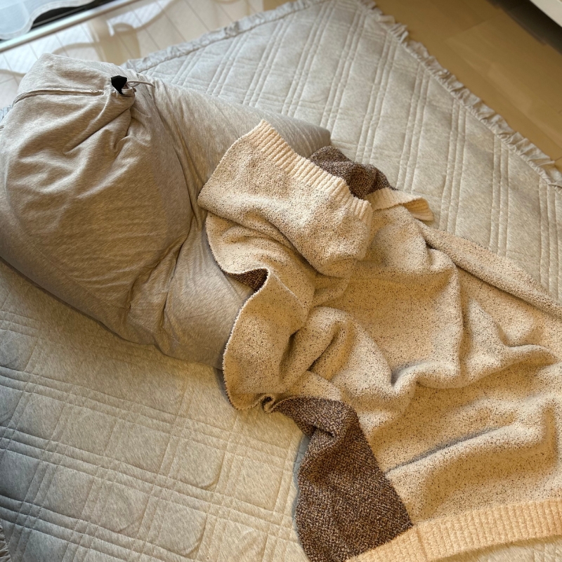 ビーズクッションに身体を預けつつ、ブランケットの軽さと柔らかさが体にふんわりフィット。
